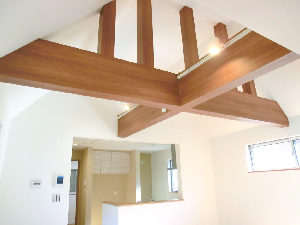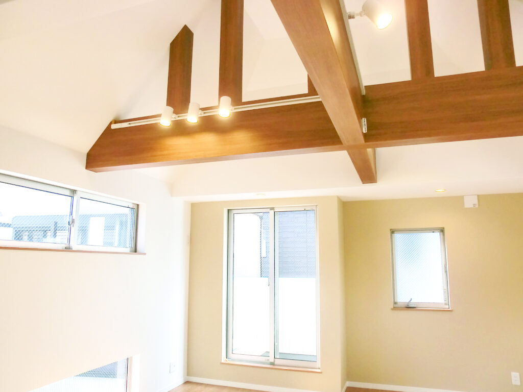 屋根裏収納&吹き抜け、解放感があるリビングの家